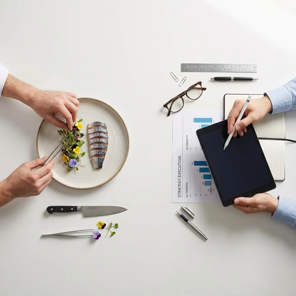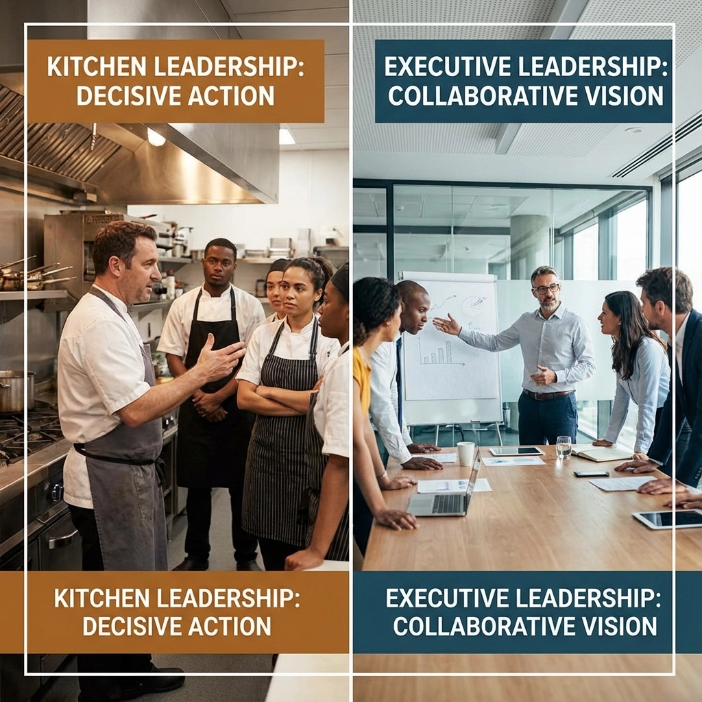 The difference is that chefs develop these skills through daily practice in high-stakes environments. Corporate leaders typically learn them through low-stakes workshops and hope for the best.